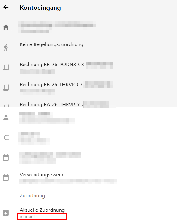 Als sauber manuell zugeordnet gelten die Rechnungen, wenn sie in der Buchung auch angezeigt werden.