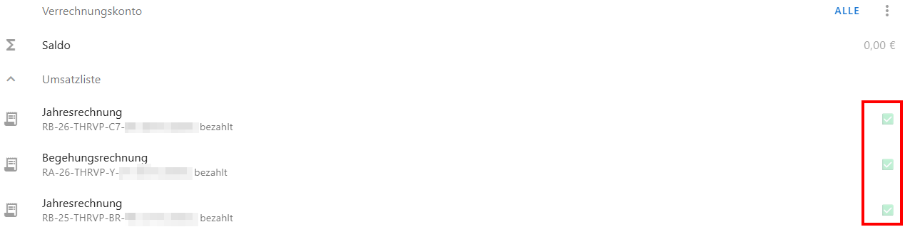 Alternative zur Prüfung sauber manuell zugeordneter Rechnungsnummern ist der Saldo im jeweiligen Gebäude..