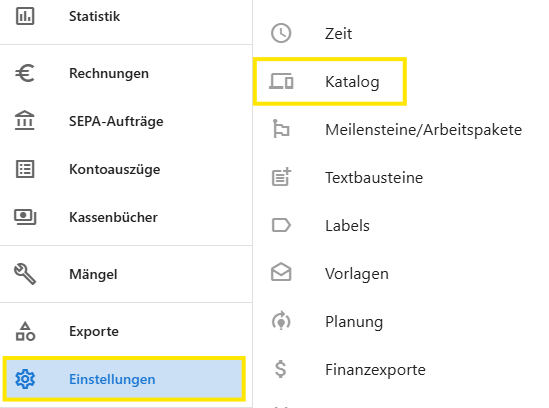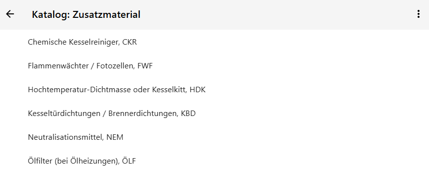 Der Katalog für Zusatzmaterialien wird analog zu den Zusatzleistungen befüllt. Rufe ihn ebenfalls über Einstellungen > Katalog auf und lege deine Materialien an.
