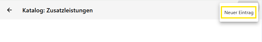 Im Katalog für Zusatzleistungen klickst du oben rechts auf die drei Punkte und wählst Neuer Eintrag. Es öffnet sich eine Maske, in die du alle relevanten Informationen einträgst: