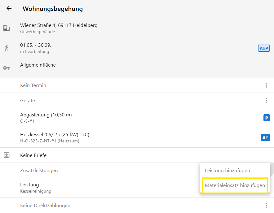 Teil 2: Leistungen und Materialien in der Begehung hinzufügen