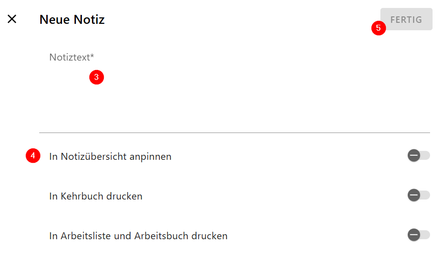 Notizen kannst du an vielen Stellen anlegen, z. B. im Gebäude, in Nutzungseinheiten oder an Technikobjekten.