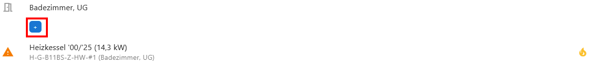 Im Badezimmer klicken wir auf das blaue Kästchen mit dem +