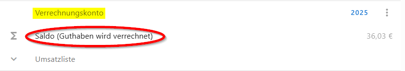 Dass eine Verrechnung mit der nächsten freien Rechnung erfolgt, wird danach im Verrechnungskonto angezeigt: