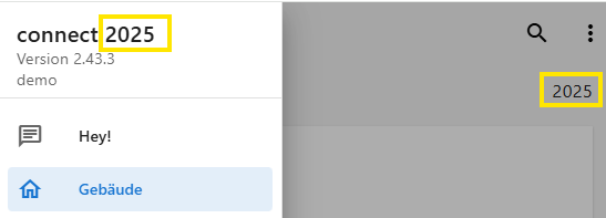 Mit Klick auf die Jahreszahl, entweder im Menü oder oben rechts in der Gebäude, Begehungs- und Terminliste kann in ein anderes Abrechnungsjahr gewechselt werden.