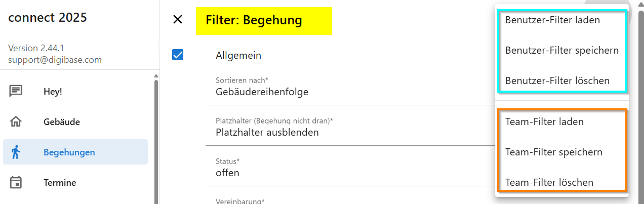 Ab connect 2.44.0 können klassische Filter für das gesamte Team gespeichert werden.