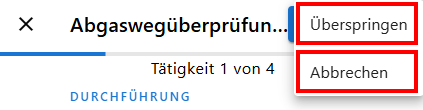 Über das 3-Punkte-Menü habt ihr jederzeit die Möglichkeit eine Tätigkeit zu überspringen oder den Assistenten abzubrechen.