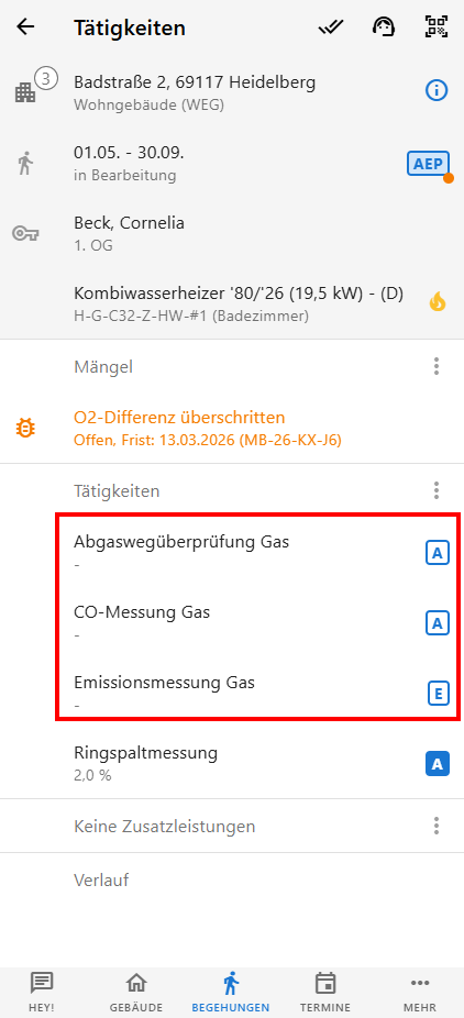 Den Assistenten findet ihr nicht in der Begehung, sondern in der Technik zur Begehung. In Abhängigkeit von der TRGI-Klasse und der zugehörigen Tätigkeiten besteht er aus mehreren Schritten.