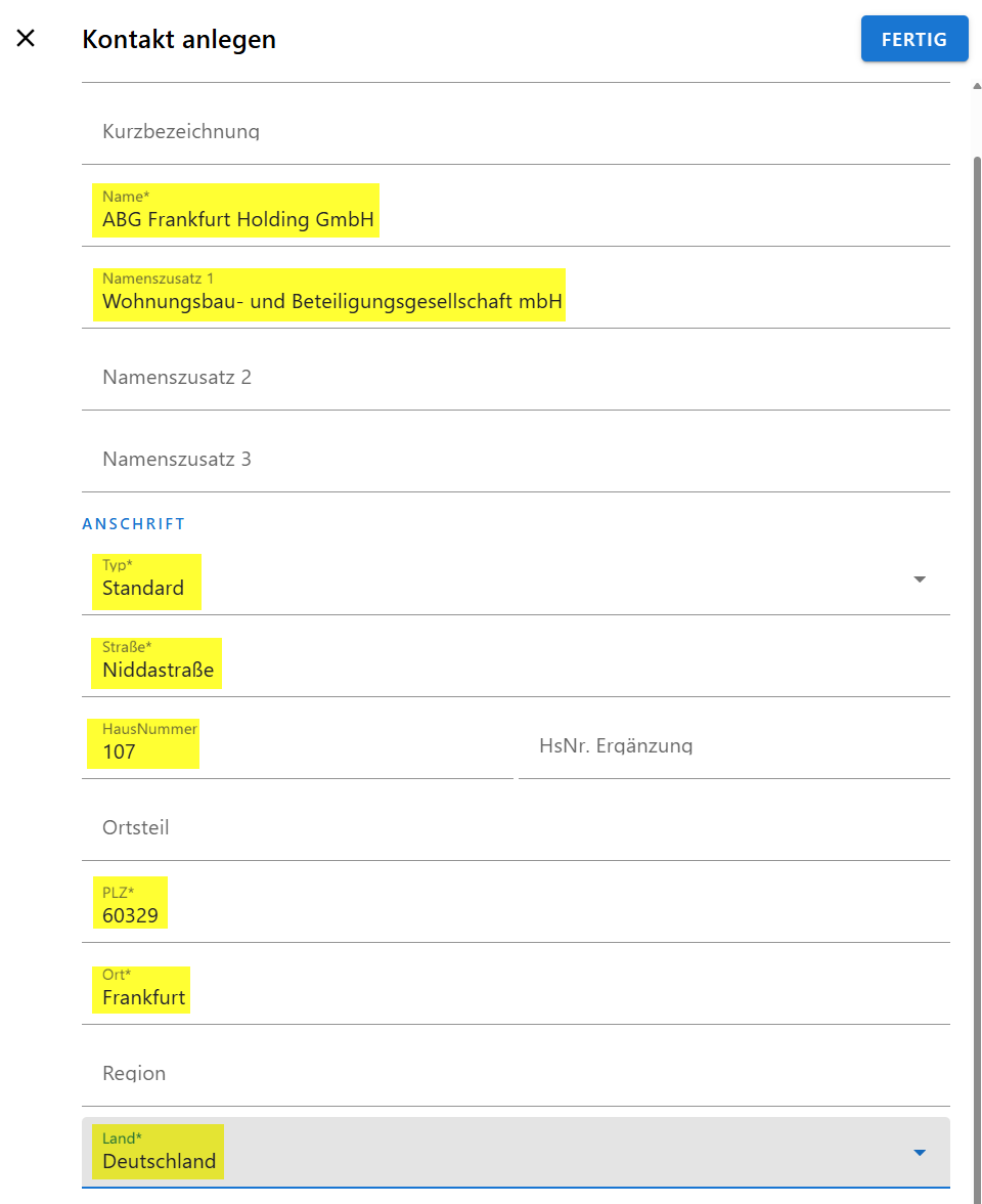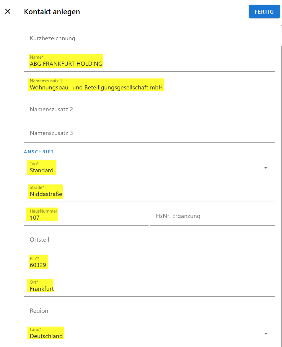 Leg dir den Kontakt der ABG einmal sauber an. Du kannst einen bestehenden Kontakt anpassen oder einen neuen anlegen:
